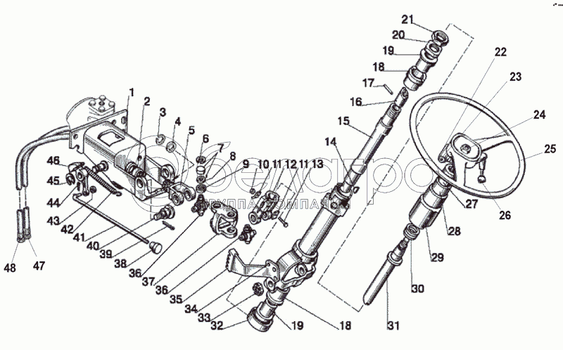 Каталог запасных частей к технике: МТЗ МЛ-131. Колонка рулевая с откидным колесом