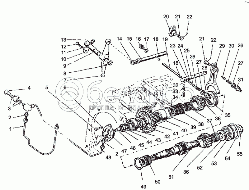 Каталог запасных частей к технике: МТЗ МЛ-131. Коробка передач. Вал пониженных передач