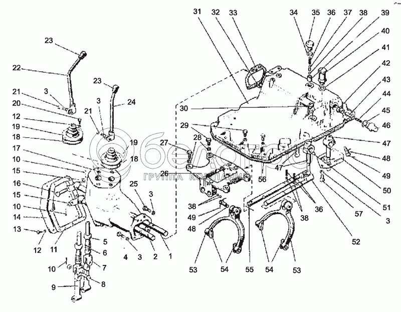 Каталог запасных частей к технике: МТЗ МЛ-131. Механизм управления коробкой передач