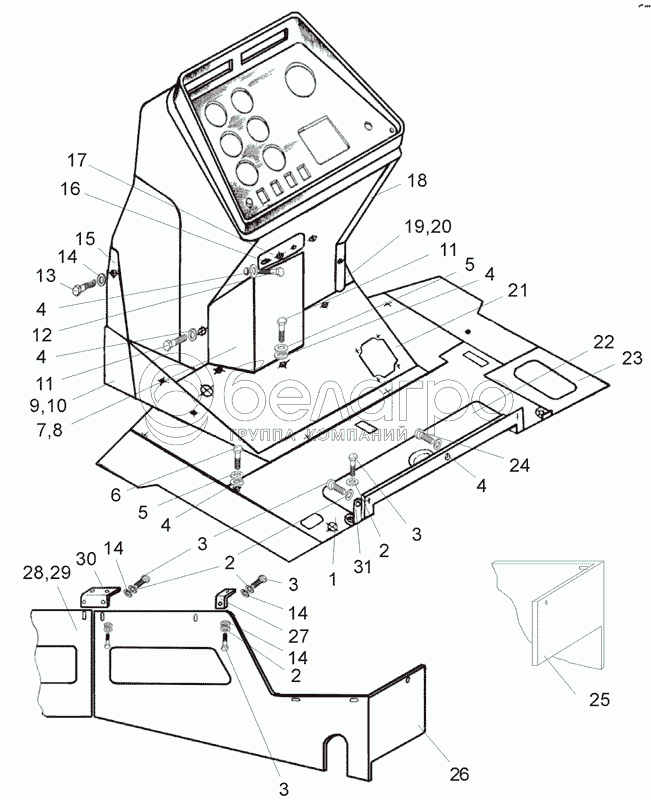Каталог запасных частей к технике: МТЗ МЛ-131. Панели щитка приборов и подкабинного пространства