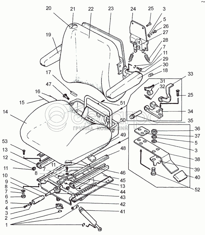 Каталог запасных частей к технике: МТЗ МЛ-131. Сиденье оператора
