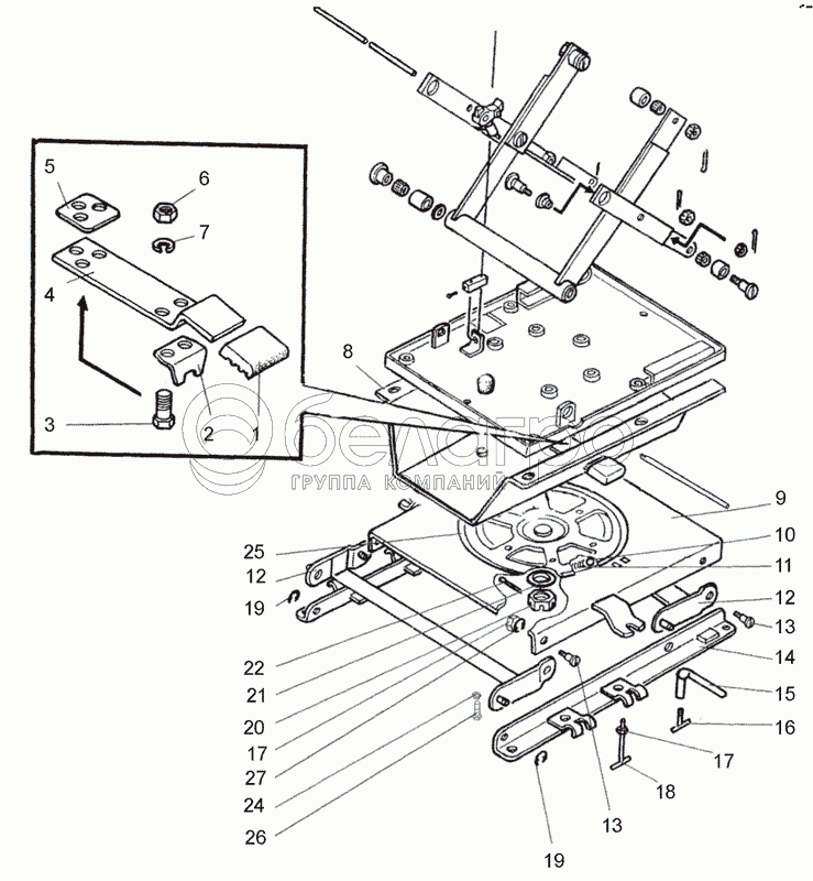 Каталог запасных частей к технике: МТЗ МЛ-131. Сиденье оператора (механизм реверса)
