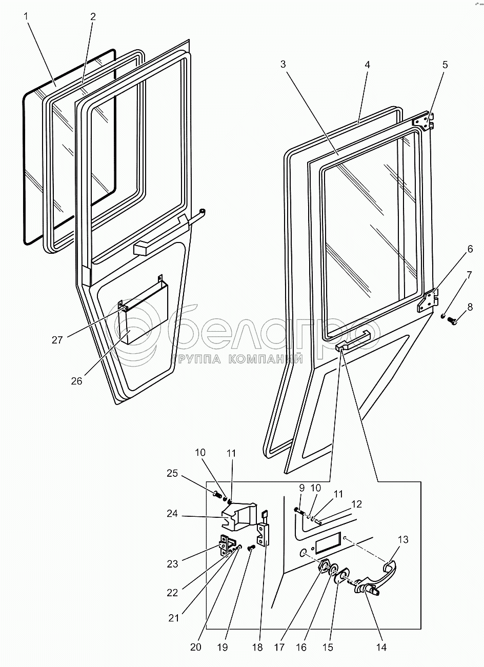 Каталог запасных частей к технике: МТЗ МЛПТ-344. Двери. Запорные устройства дверей