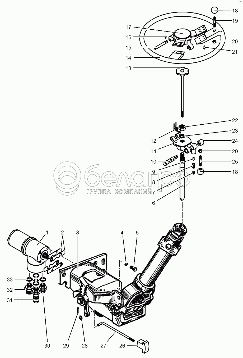Каталог запасных частей к технике: МТЗ МЛПТ-344. Колонка рулевая с откидным колесом