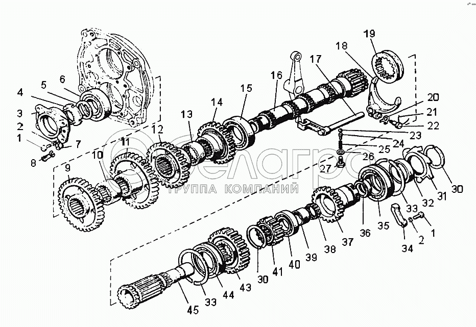 Каталог запасных частей к технике: МТЗ МЛПТ-344. Коробка передач – Вал промежуточный. Шестерня