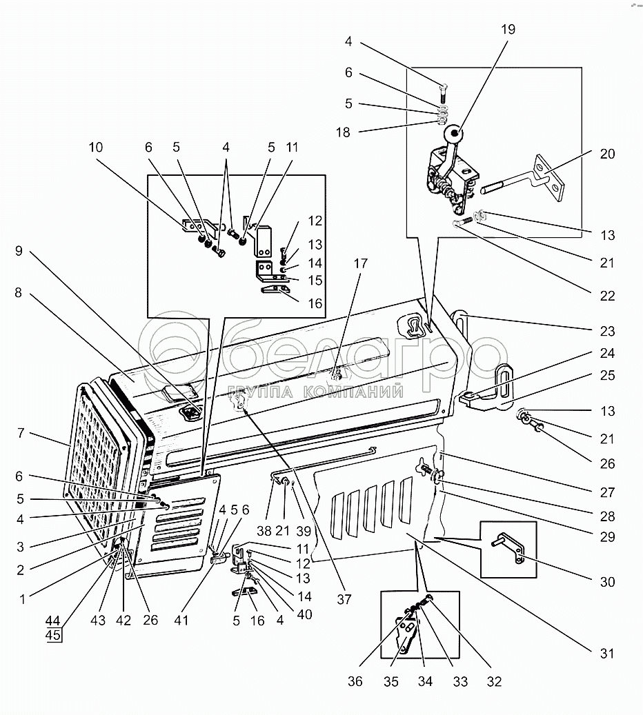 Каталог запасных частей к технике: МТЗ МЛПТ-344. Облицовка. Установка боковин