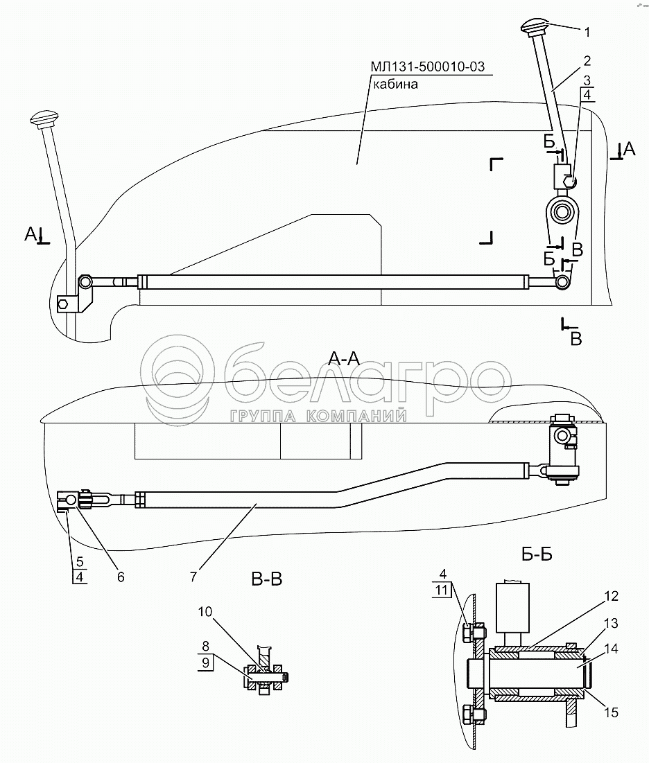 Каталог запасных частей к технике: МТЗ МЛПТ-344. Привод дублированный переключения передач