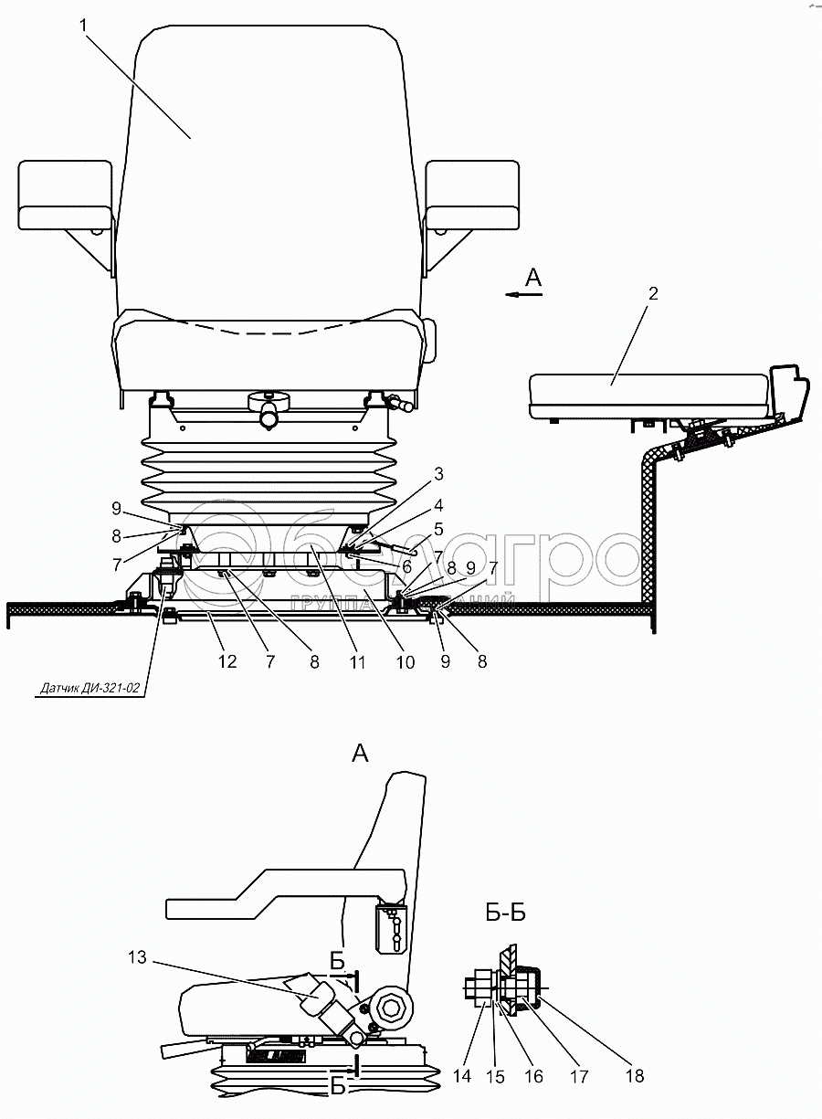 Каталог запасных частей к технике: МТЗ МЛПТ-344. Установка сидений. Сиденье
