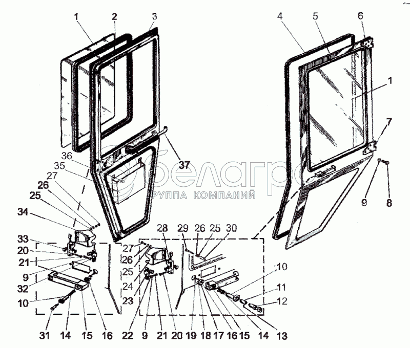Каталог запасных частей к технике: МТЗ МЛПТ-354М. Дверь левая, дверь правая