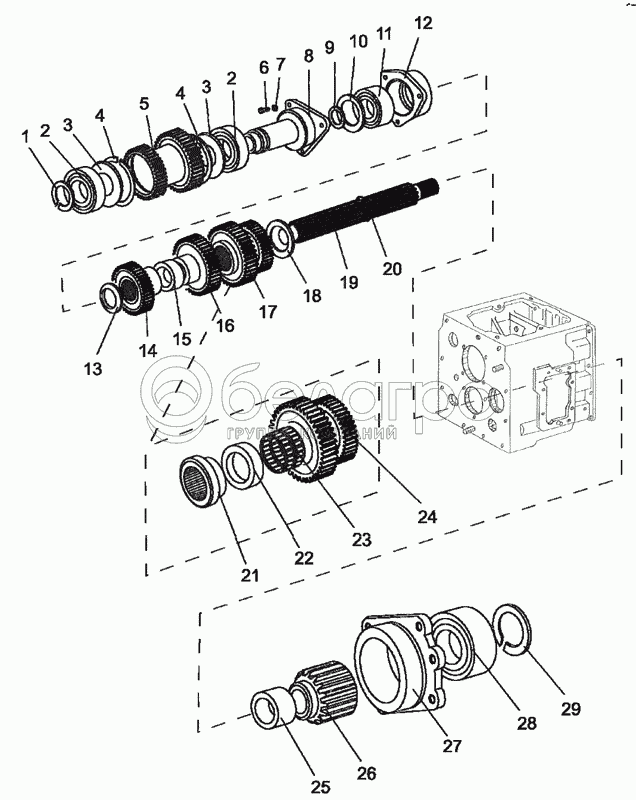 Каталог запасных частей к технике: МТЗ МЛПТ-354М. Коробка переда