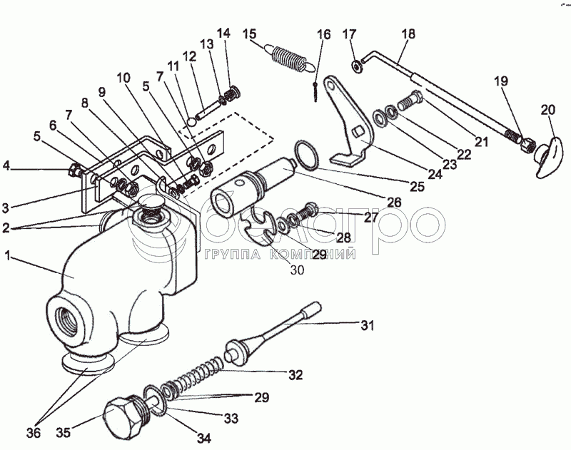 Каталог запасных частей к технике: МТЗ МЛПТ-354М. Управление блокировкой дифференциала, кран блокировки