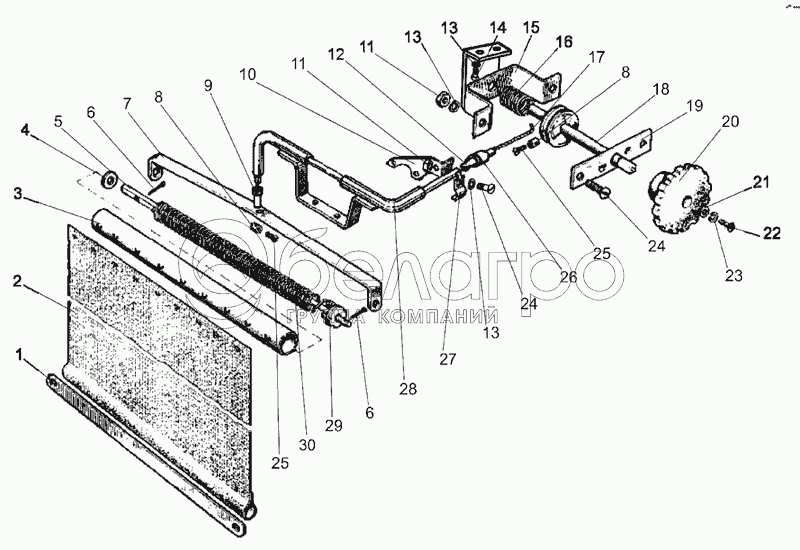 Каталог запасных частей к технике: МТЗ МЛПТ-354М. Управление шторкой, шторка