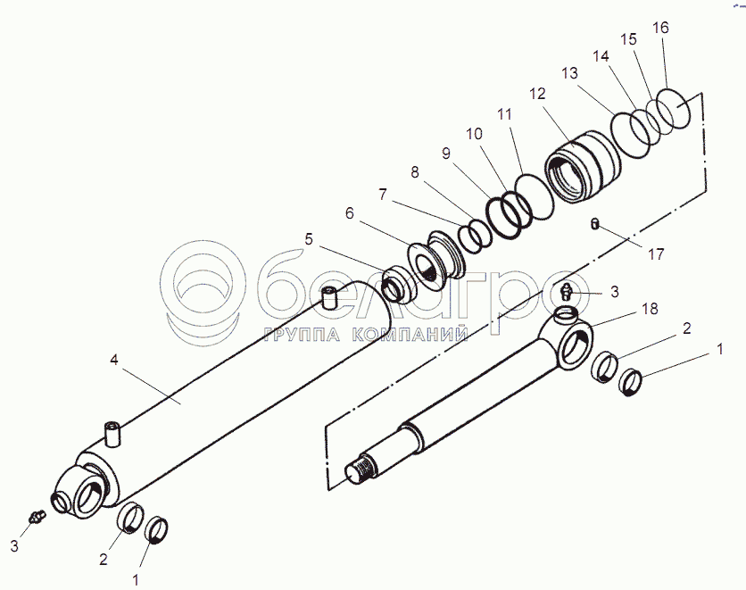 Каталог запасных частей к технике: МТЗ МПТ-461.1. ГМ42-0805000 Гидроцилиндр