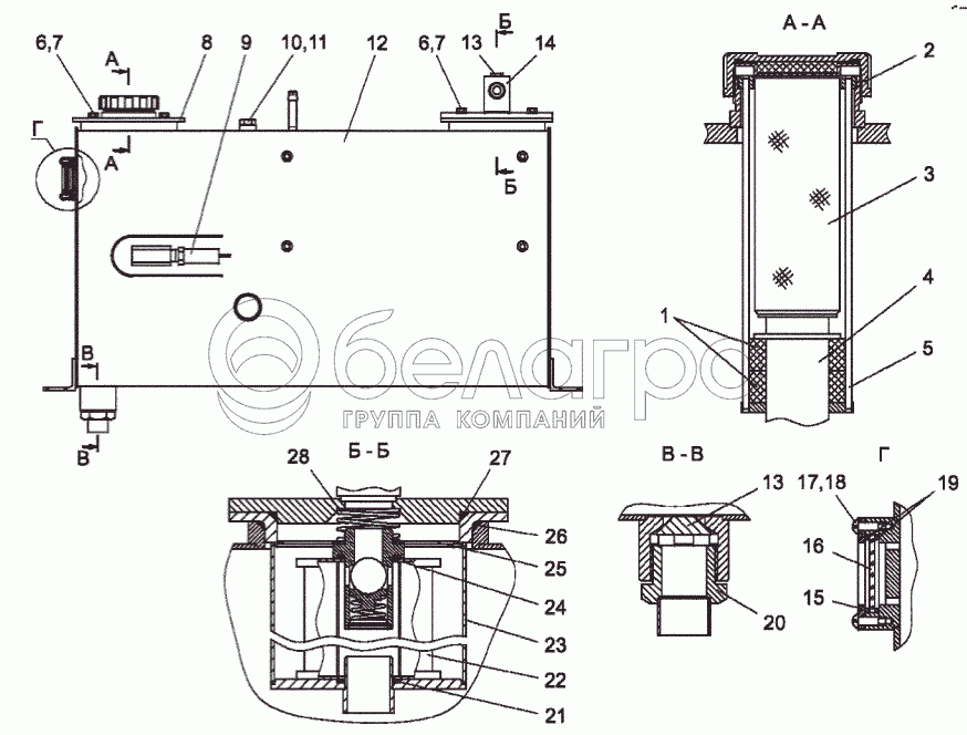Каталог запасных частей к технике: МТЗ МПТ-461.1. ГМ42-4501000 Гидробак