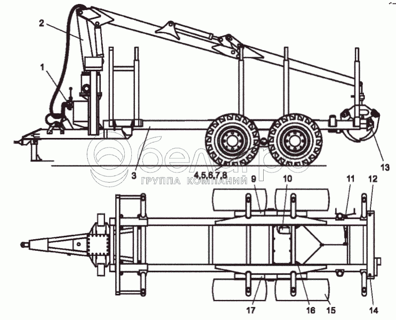Каталог запасных частей к технике: МТЗ МПТ-461.1. ПЛ9-0000010 Полуприцеп лесовозный ПЛ-9
