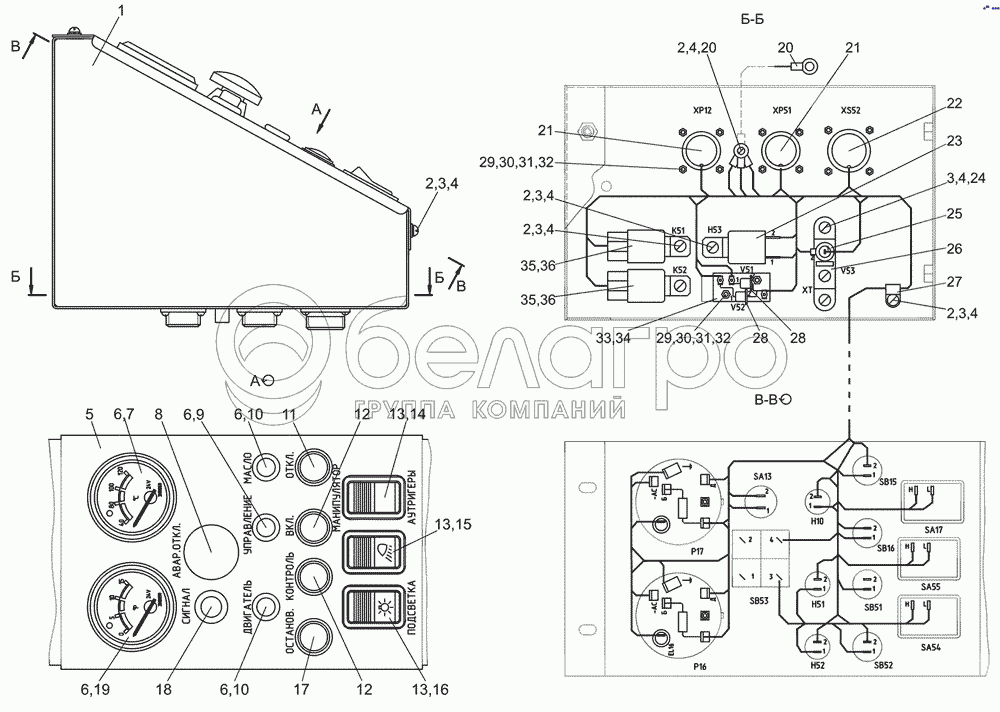 Каталог запасных частей к технике: МТЗ МР-40-01. Пульт управления. Панель с приборами