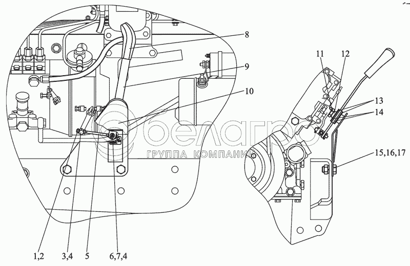 Каталог запасных частей к технике: МТЗ МР-40-01. Управление подачей топлива