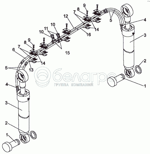 Каталог запасных частей к технике: МТЗ МУП-351. Гидросистема ковша двухчелюстного