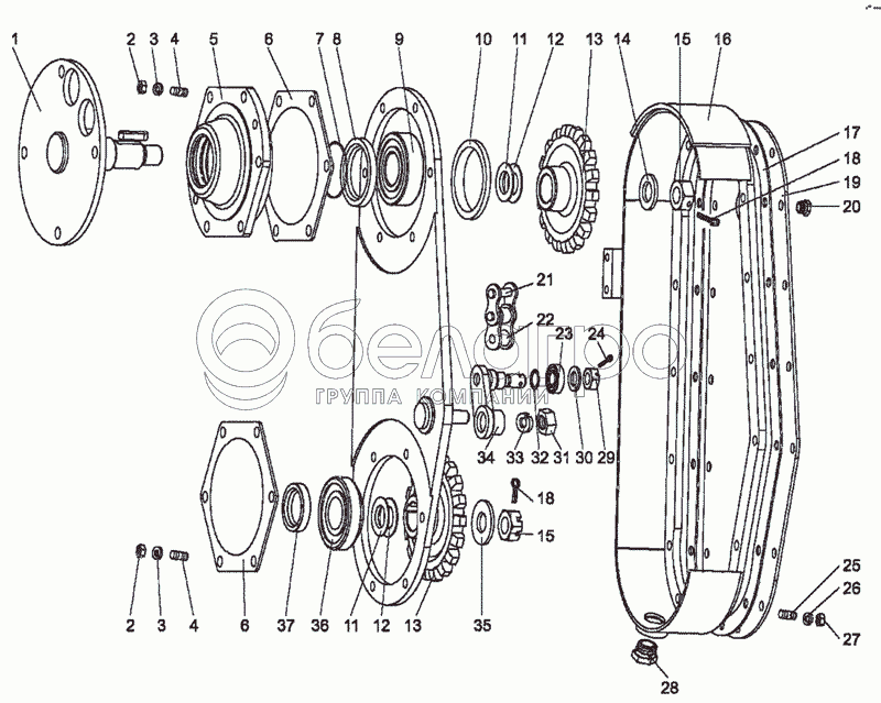 Каталог запасных частей к технике: МТЗ МУП-351. Привод щетки