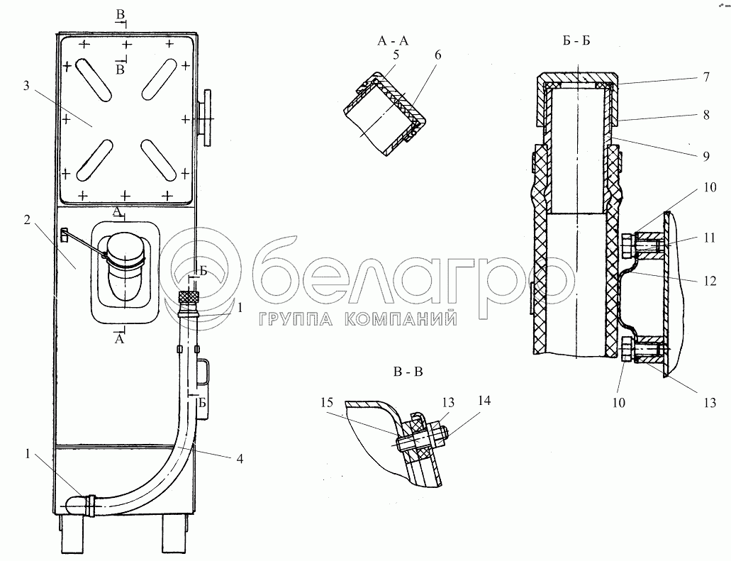 Каталог запасных частей к технике: МТЗ Ш-353М. Бак барботажный Ш353М-1200010