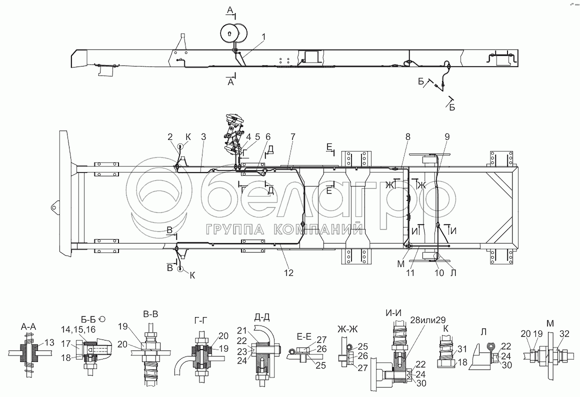 Каталог запасных частей к технике: МТЗ Ш-353М. Гидропривод тормозов Ш353М-3501000