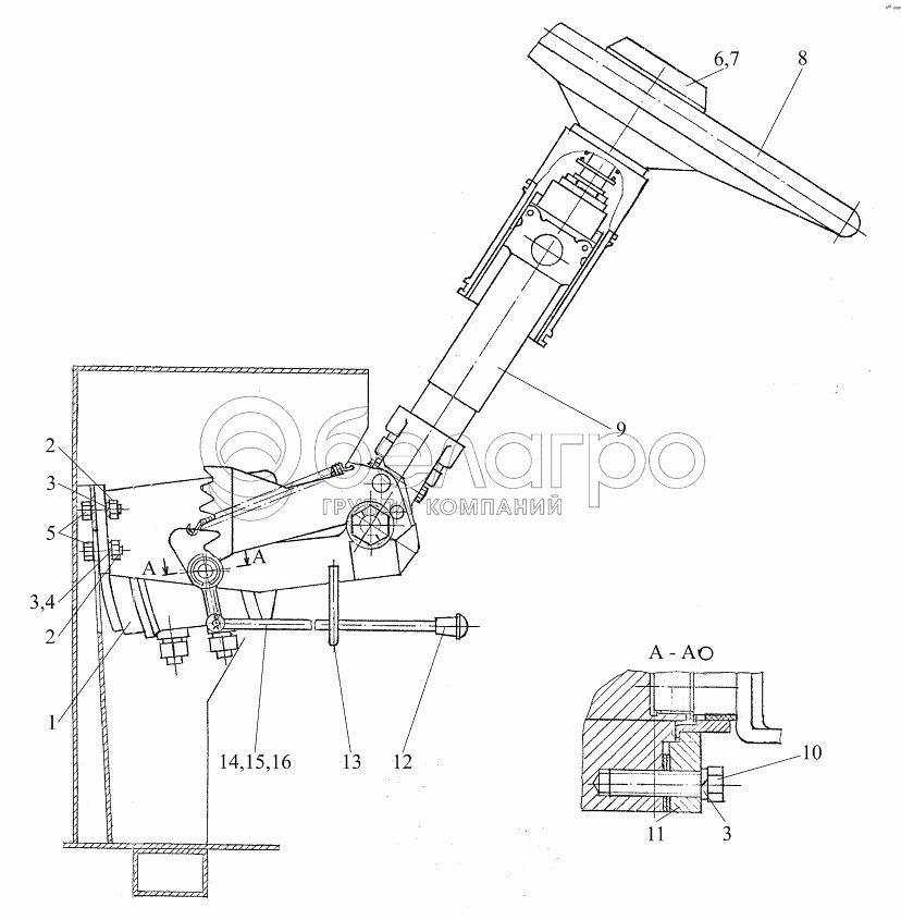 Каталог запасных частей к технике: МТЗ Ш-353М. Колонка рулевая Ш353М-3401200