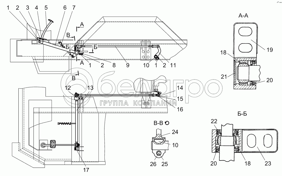 Каталог запасных частей к технике: МТЗ Ш-353М. Привод управления сцеплением Ш353М-1602010