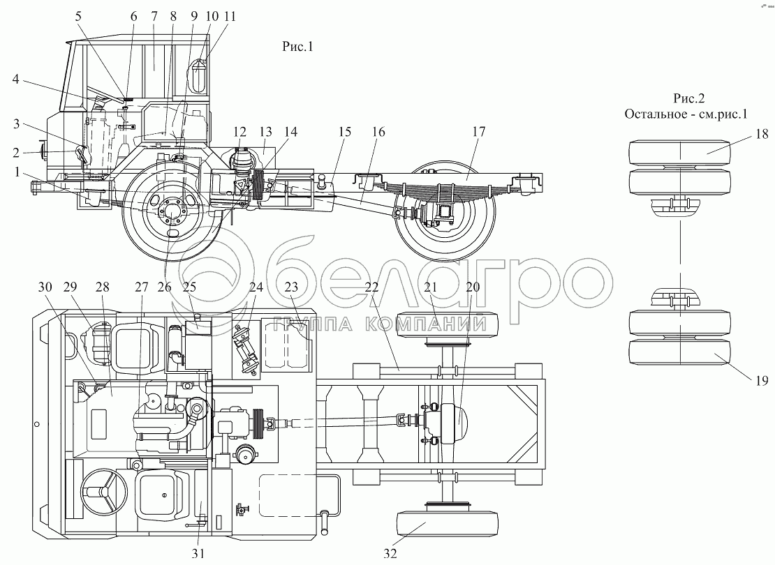 Каталог запасных частей к технике: МТЗ Ш-353М. Схема деления шасси на составные части Ш353М-0000010
