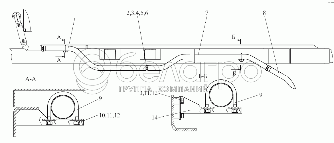 Каталог запасных частей к технике: МТЗ Ш-353М. Труба выпускная 353М2-1203010-Б