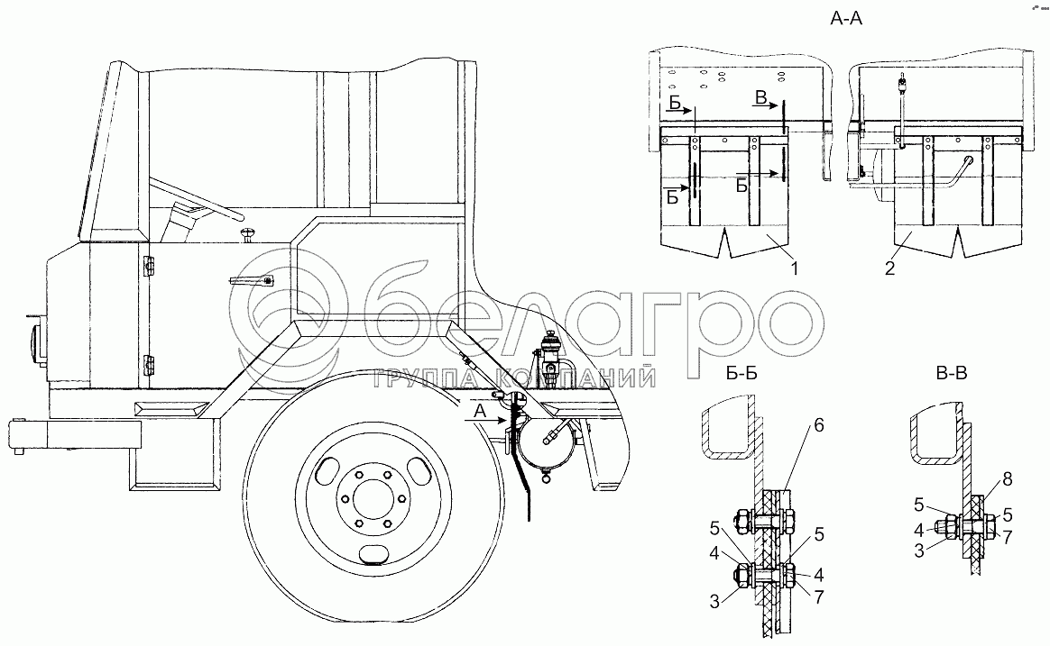 Каталог запасных частей к технике: МТЗ Ш-353М. Установка брызговиков Ш353М-8404005