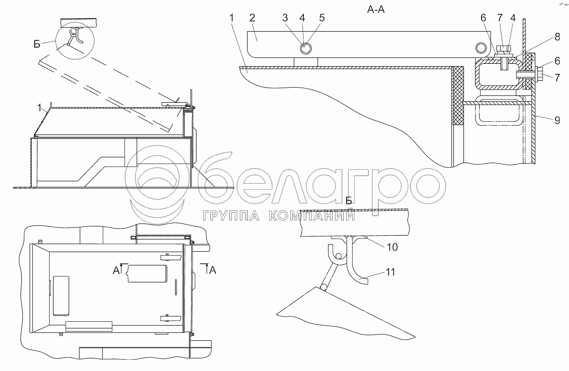 Каталог запасных частей к технике: МТЗ Ш-353М. Установка капота Ш353М-8402010