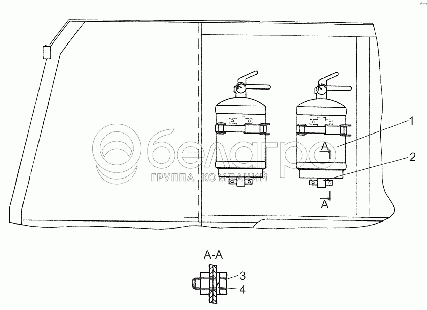 Каталог запасных частей к технике: МТЗ Ш-353М. Установка огнетушителя Ш353М-3910010-Б