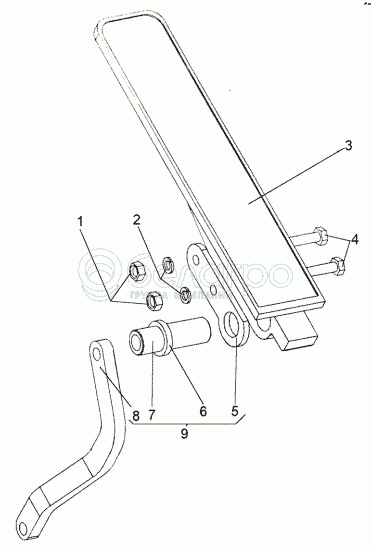 Каталог запасных частей к технике: МЗКТ-69234. Педаль с втулкой и рычагом 64221-1108008-10