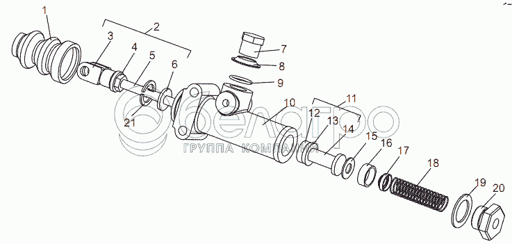 Каталог запасных частей к технике: МЗКТ-69234. Подпедальный цилиндр 69237-1602300