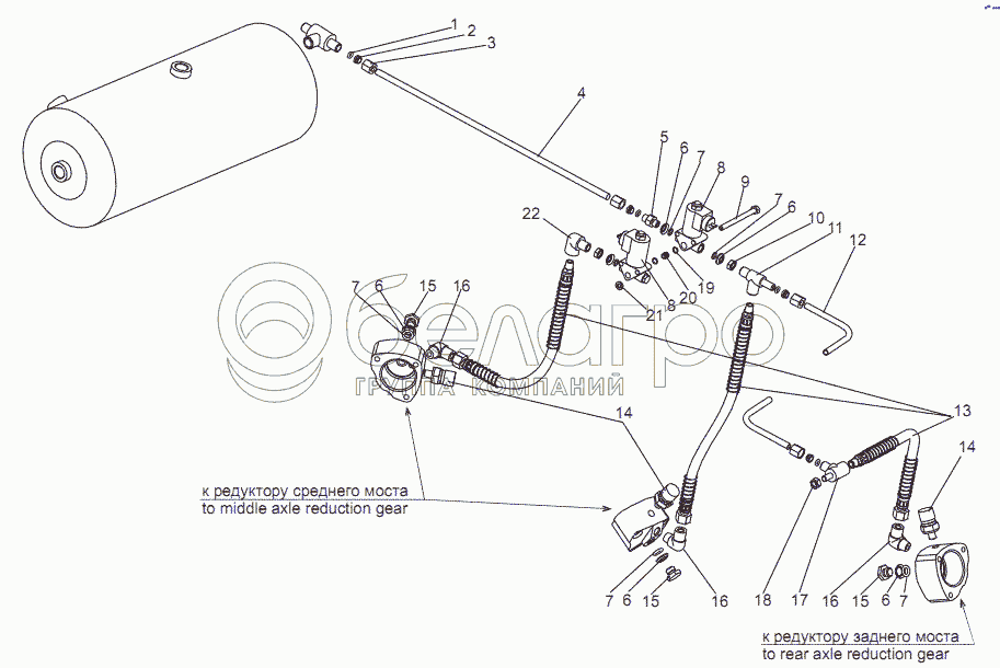 Каталог запасных частей к технике: МЗКТ-69234. Привод управления блокировкой дифференциалов