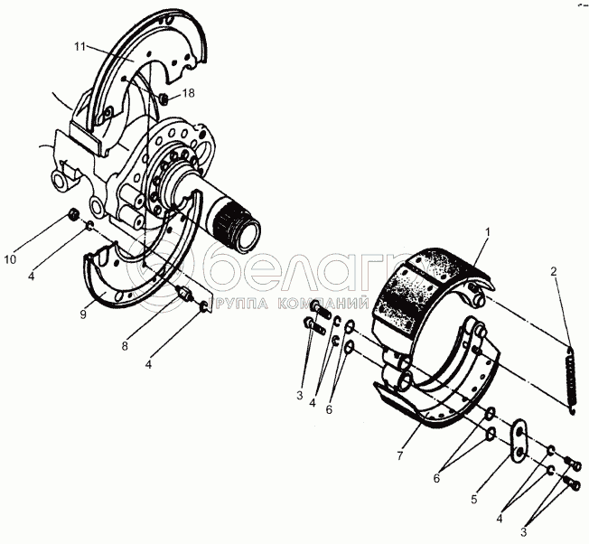 Каталог запасных частей к технике: МЗКТ-69234. Тормоз среднего моста
