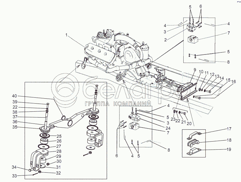 Каталог запасных частей к технике: МЗКТ-69234. Установка двигателя