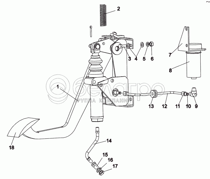 Каталог запасных частей к технике: МЗКТ-69234. Установка механизма управления сцеплением