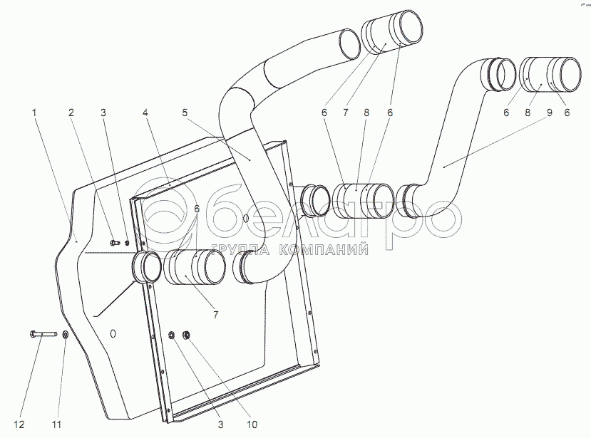 Каталог запасных частей к технике: МЗКТ-69234. Установка охладителя наддува