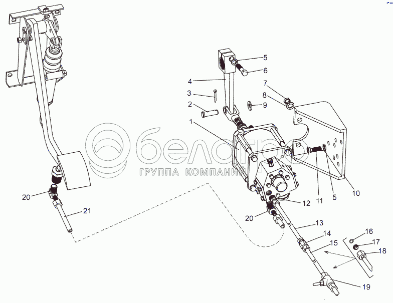 Каталог запасных частей к технике: МЗКТ-69234. Установка привода управления сцеплением