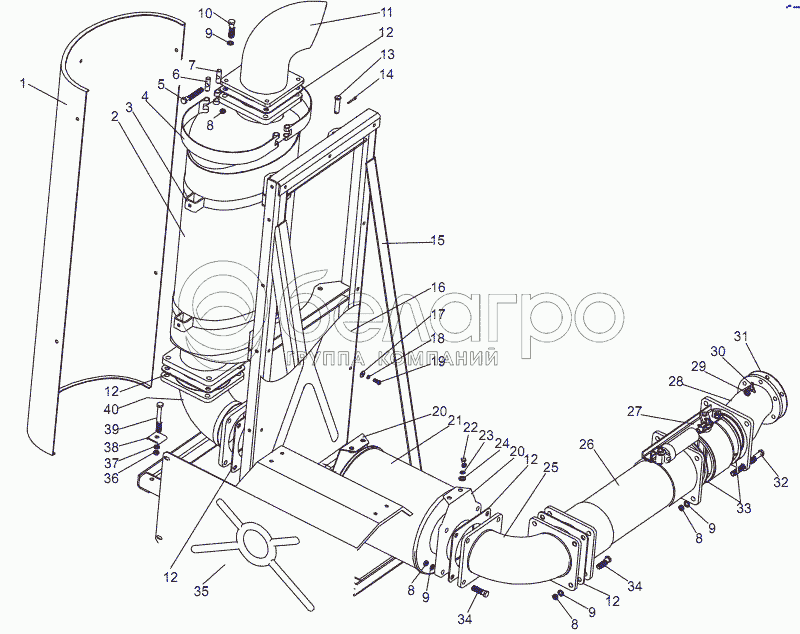 Каталог запасных частей к технике: МЗКТ-69234. Установка системы выпуска газов