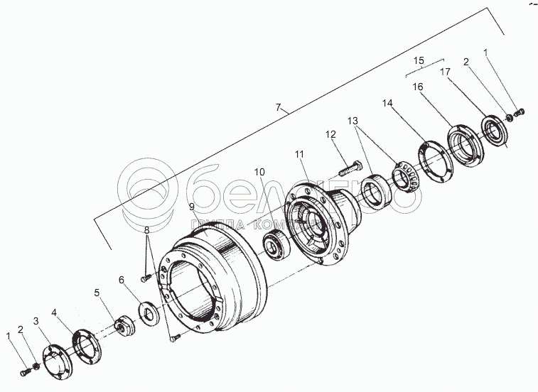 Каталог запасных частей к технике: МЗКТ-69234. Установка ступиц колес