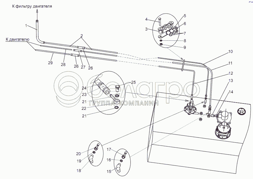 Каталог запасных частей к технике: МЗКТ-69234. Установка топливопроводов