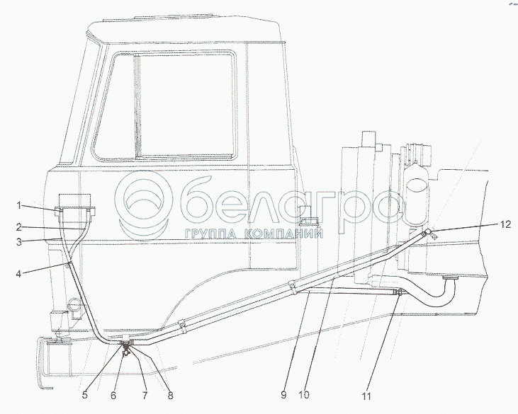Каталог запасных частей к технике: МЗКТ-69234. Установка трубопроводов отопителя кабины