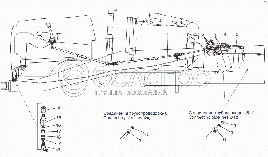 Каталог запасных частей к технике: МЗКТ-69234. Воздухопроводы и шланги управления механизмом переключения передач