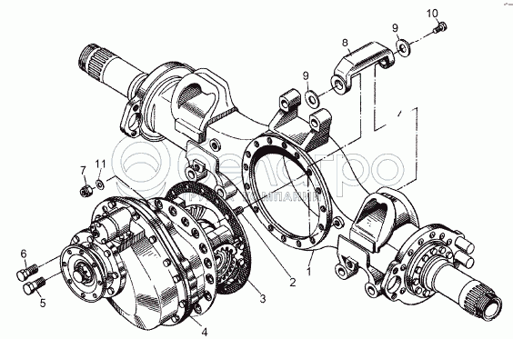Каталог запасных частей к технике: МЗКТ-8006. Мост средний. Редуктор с картером моста
