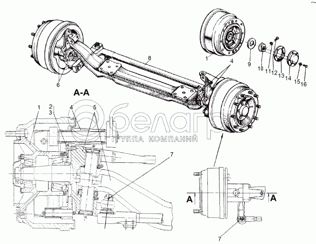 Каталог запасных частей к технике: МЗКТ-8006. Ось передняя 69237-3000015-01