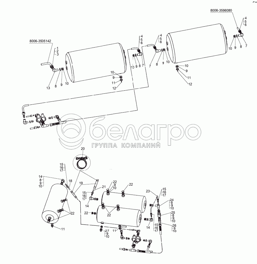 Каталог запасных частей к технике: МЗКТ-8006. Присоединительная арматура к ресиверам