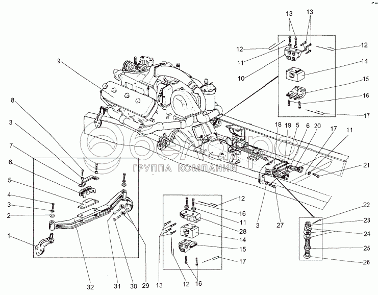 Каталог запасных частей к технике: МЗКТ-8006. Установка двигателя