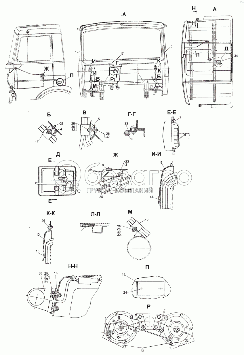 Каталог запасных частей к технике: МЗКТ-8006. Установка электрооборудования на кабине